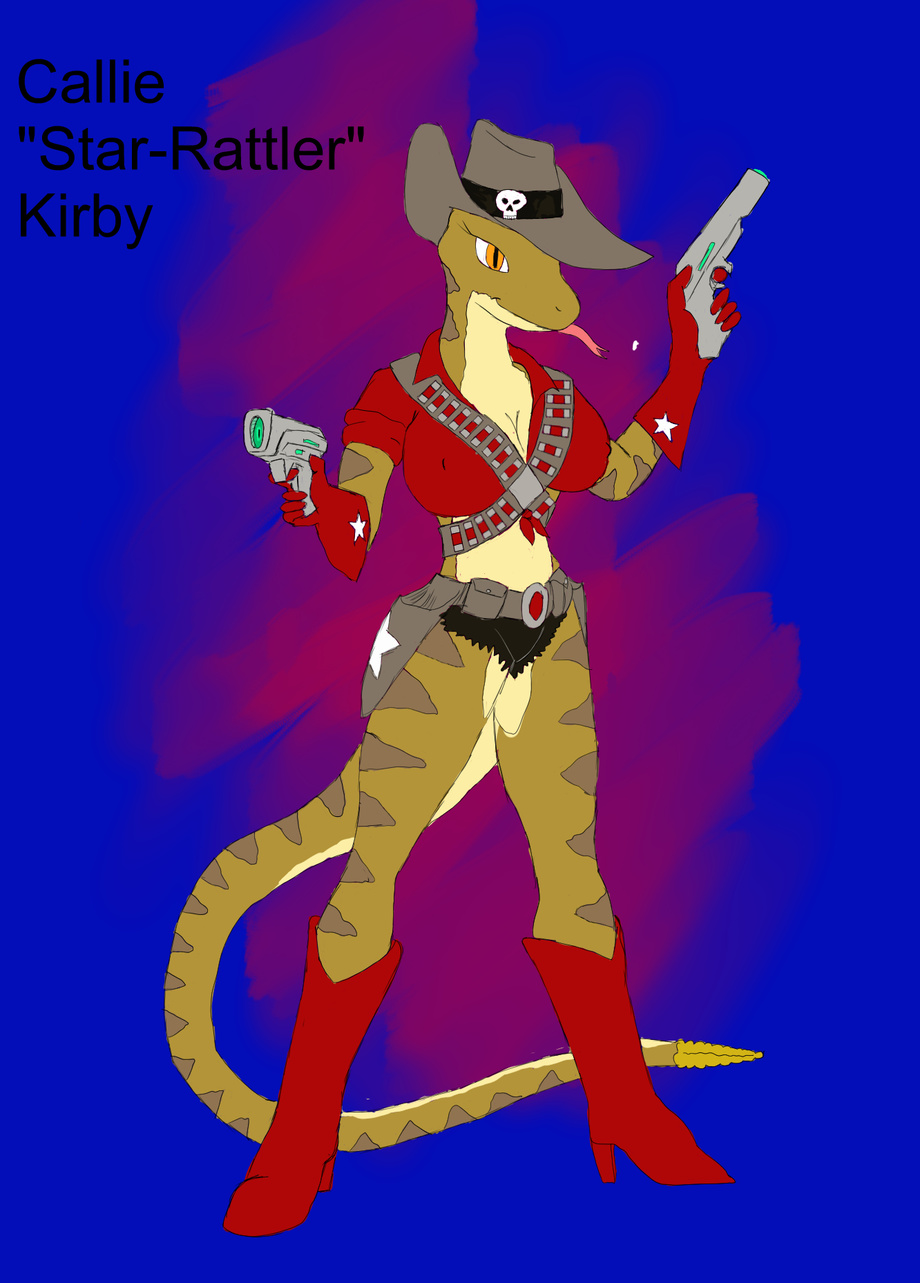 This is Callie Kirby, who was abducted by aliens as a young girl during the American 1800s, the Wild West era. As a captive of the aliens, she was subjected to various experiments, receiving nano-enhancements as they attempted to turn her into a sextoy and super-soldier.
