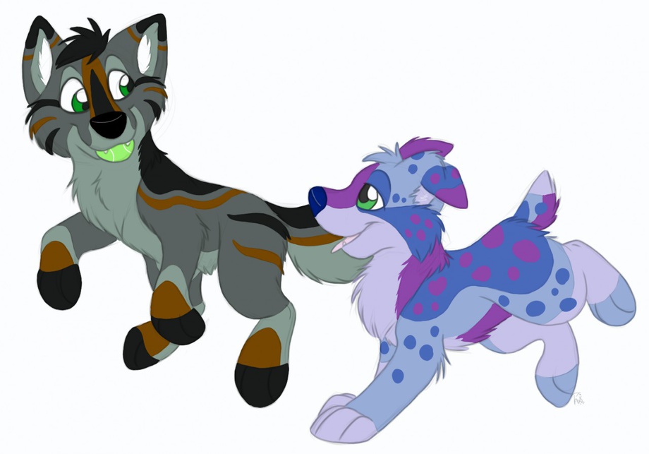 Looks like Seiryu made a new friend while playing around with a ball he found along the woods. The border collie who goes by Astura wanted to join in with the wolf. So both Seiryu and Astura decided to go wander around and play with each other for most of the day.