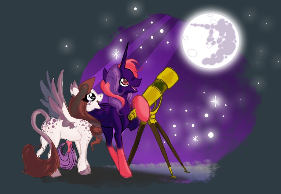my OC Dusk with his telescope showing off his favorite constellations to elphabawolf's OC