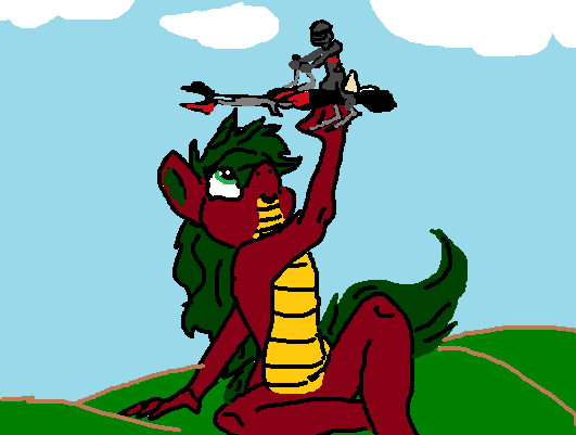 applescorch enjoying a surprise toy brought home by applejack.