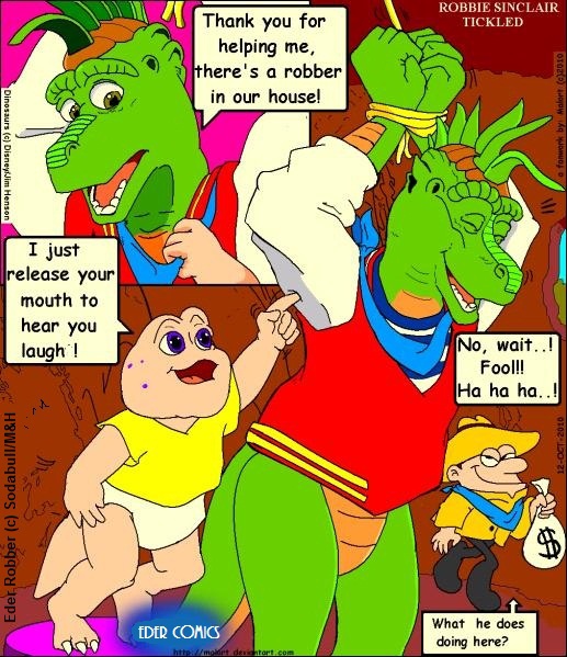 Another of my maniac ideas, this time I drew these reptiles to be victim; Robbie Sinclair is moored because a robber is doing his evil act.