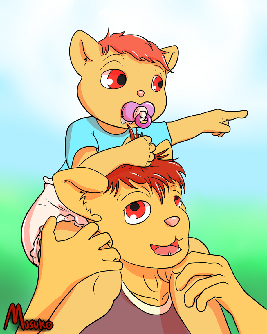 Thirty-year-old Musuko spends a day with two-year-old Musuko. How? Probably has a time machine at CKC or something.