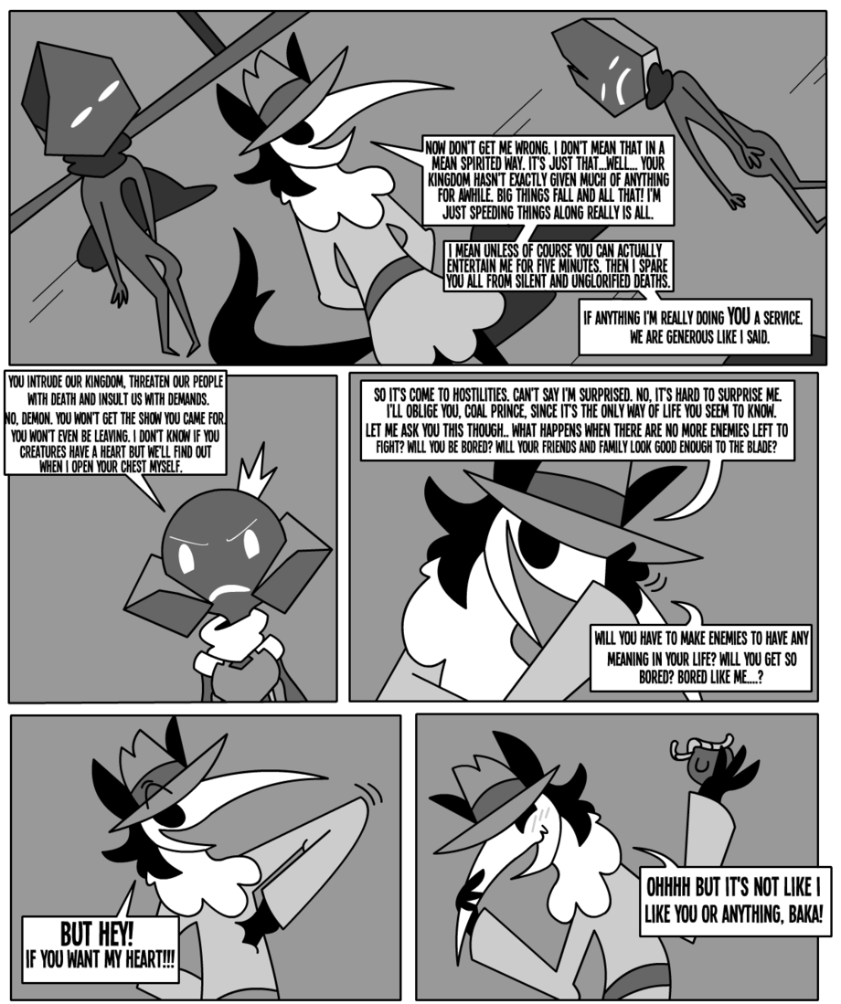 I've only just realized that somewhere along the way, the grandiose self-descriptions and blatant threats of horrible destructive power had me reading the Fate Demon's dialogue in the voice of John de Lancie. He does have something of Q in him, to be certain...