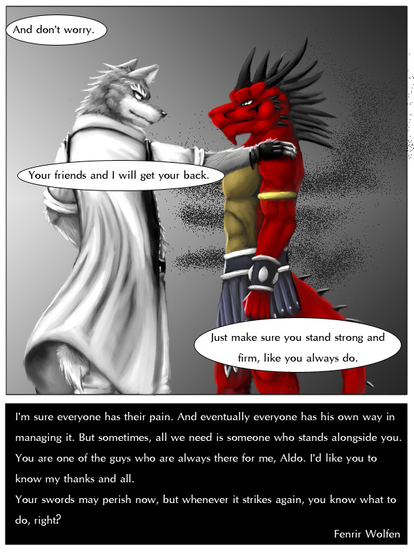I know everyone has his swords, just like this guy does. All I wanted to say is. "Dude, cheer up, I'll be there for ya, whoever you are. You're a friend of mine, after all."