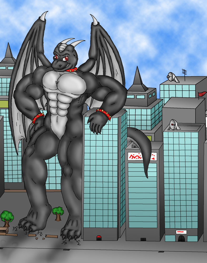 I took a couple of requests over on FurAffinity, this one is for RyuujinGekijou who wanted to see his character macrofied and leaning on a skyscraper. So here's the big guy standing tall in the city, bigger than any of the buildings. :D