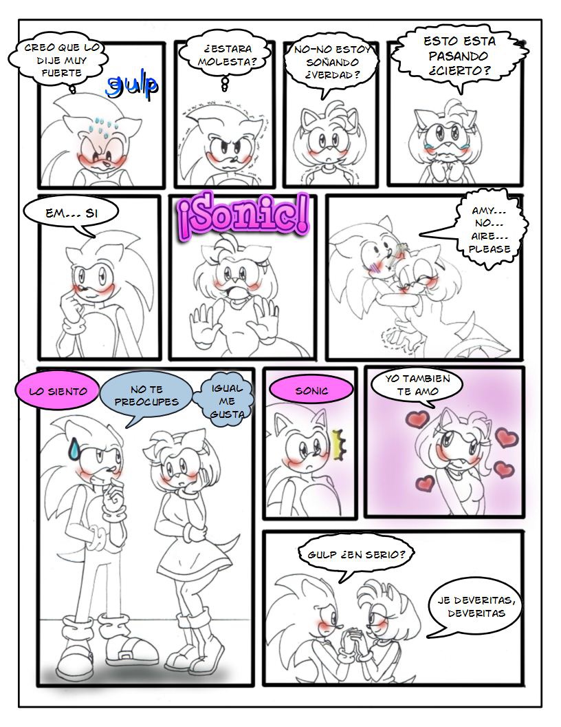 Sonic y Amy finalmente se declaran su amor y estan tan inmersos en su felicidad que no se dan cuenta que sus amigos los han estado observando desde hace un buen rato.