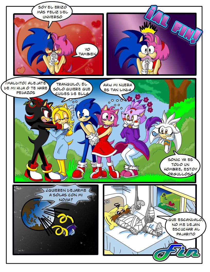 Sonic no entiende nada y solo se enfada exigiendo privacidad a sus locos amigos, mientras vemos a un Eggman tranquilo en el hospital escuchando a los pajaritos cantar.