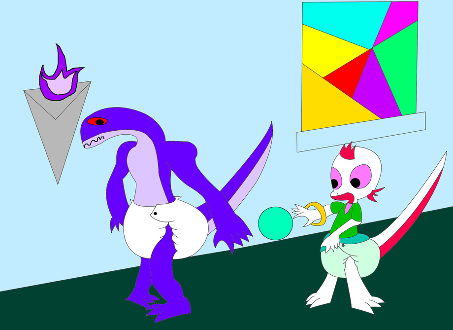 After watching an LP of Castlevania 64 and the cute Lizard Men, my diaper sense tingled. So here we have Takoda, playing the role of Carrie, dealing with a Lizard Man of her own. Instead of killing him, Takoda uses her magic to diaper the naked creature, rendering him too embarrassed to fight. I also drew both of them in Paddi diapers, which were introduced to me by Landonbay.