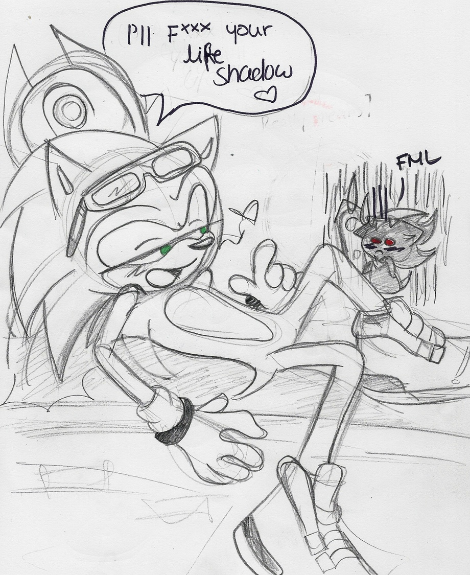 Sonic was lying on a wall nearby and jolted up responding to Shadow's FML