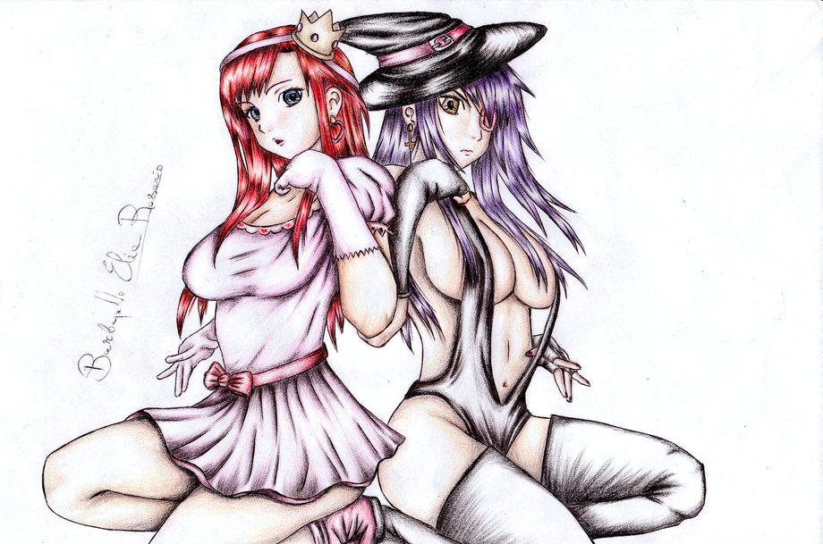 Questo disegno è collegato a quello che ho recentemente postato X3 ... Ellie è l'antagonista del manga della mia amica ! E' la nemica di Laira . Questo disegno rappresenta la doppia personalità di questo personaggio X3 , per quanto possano sembrare diverse esteticamente si tratta della stessa persona ^^" . La finta personalità tutta dolce e carina è la versione vestita da principessa mentre la sua vera personalità cattiva e sadica è la versione vestita da strega X3!