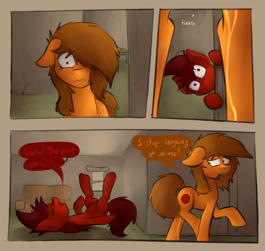 After being locked out of the bathroom for too long, Venus just couldn’t hold it and let her bladder loose all over the floor. Mars found it very amusing.