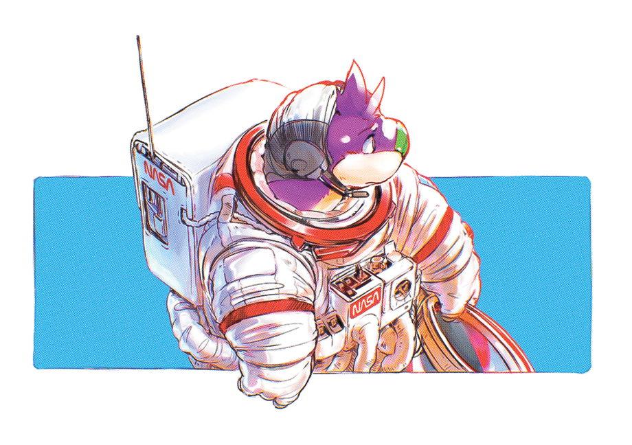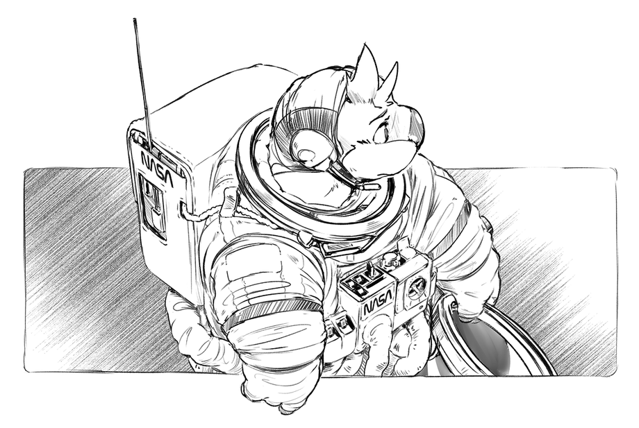 This thing is super-clunky! I dunno how all those super-brave astronauts manage to move around at all, it'd be like swimmin' with a bunch'a inner-tubes stuck all over you.Space is wayyyy more dangerous than divin' though, so it makes a lot of sense that you gotta wear somethin' so much stronger and bigger than you are if you are conquerin' it. I'm waitin' for when they finally figure out how to make the helmet fit my 'hawk without messin' it up. I guess a lot of work went into fittin' my rudder in there, so I can't really complain too much <3
