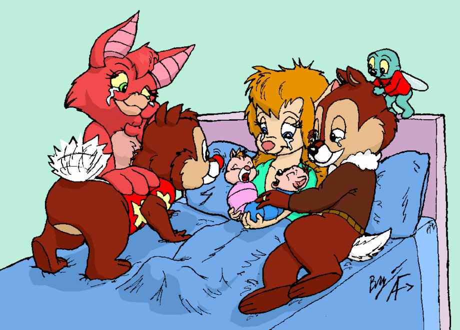 Dale and Foxglove welcome their daughter Danielle, Dani to her friends into the world. Of course Chip and Gadget are here with their twins, Nate and Kimmy, to see the event.