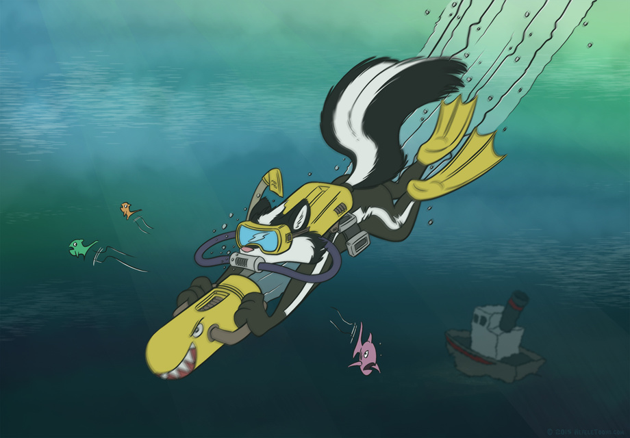This pic has been done as a little thank-you for Skunki over on FA, who runs a printing company in southwestern Germany. If you ever bought something with my work on, printed on paper (like a PinUp calendar or a portfolio), you can thank him for it. This year, he did some awesome job before EuroFurence, doing a last minute print job on large posters for me. As he is a passionate tech-oriented scuba diver, I came up with this as a way to say thanks.