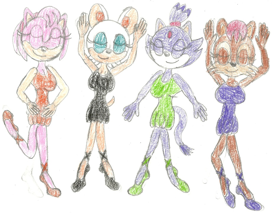 Here's a pic I drew of Amy Rose, Rouge the Bat, Blaze the Cat and Sally Acorn doing ballet. The girls are all wearing Halloween colors; Amy is wearing orange, Rouge is wearing black, Blaze is wearing green and Sally is wearing purple.