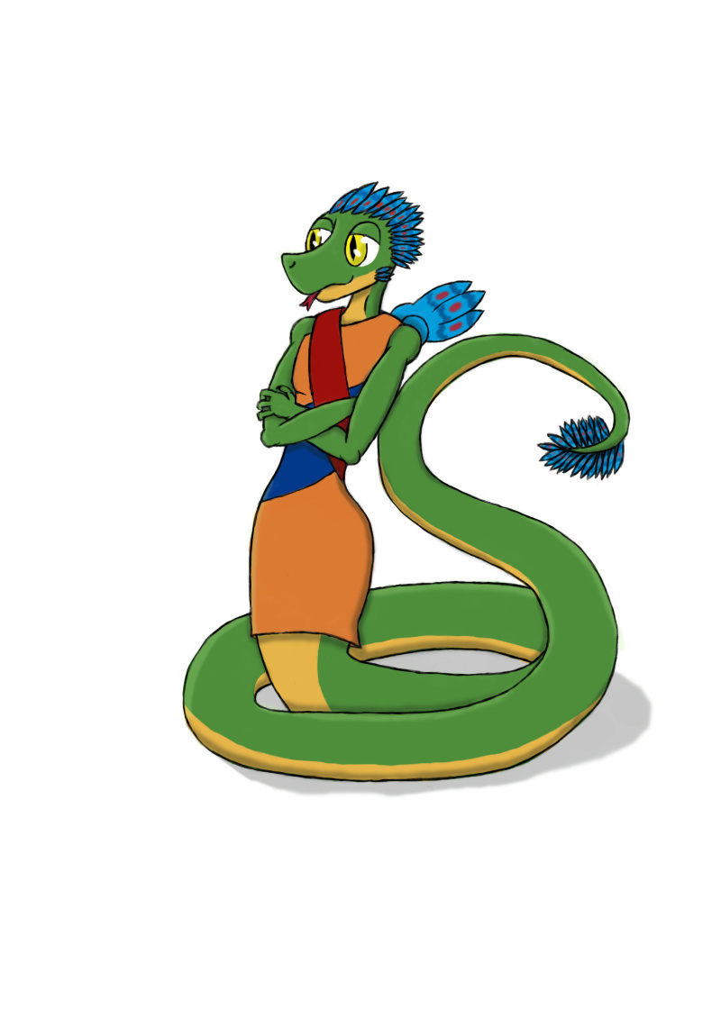 My attempt at making a cute winged-snake guy based on the Quetzalcoatl myth, I've got a backstory for him and his species but it's late when I'm typing this and I'm too lazy to put it here, maybe I'll add it later, but for now, little snake guy, hurray!