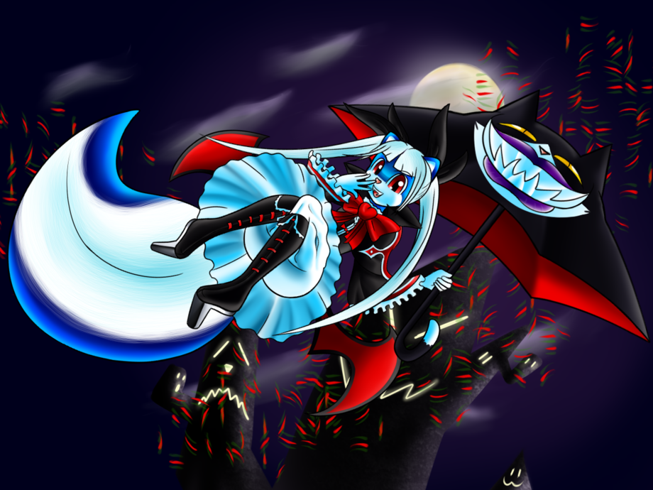 Oh I'm sorry! Pardon me while I freak the fuck out over how awesome this is! Dude, looking back just one year on this very same concept shows an ocean of improvement, and it's so frickin' sweet for it! The details are awesome! The design work is just really top notch, couldn't ask for better honestly. And the angle is badass! And speaking of her bad little ass, I friggin' adore how those bloomers are poofy near the knees but then just get stretched and rekt by her big blue caboose.