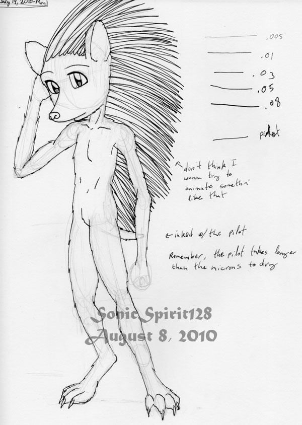 Well, it's more than a pen test, though it is that too. But there's enough of a style test here that that's a big part of it. This hedgehog's supposed to be a kid, though it doesn't really come off as such. Just some character design for a story I've toyed with, and considered turning into a cartoon.