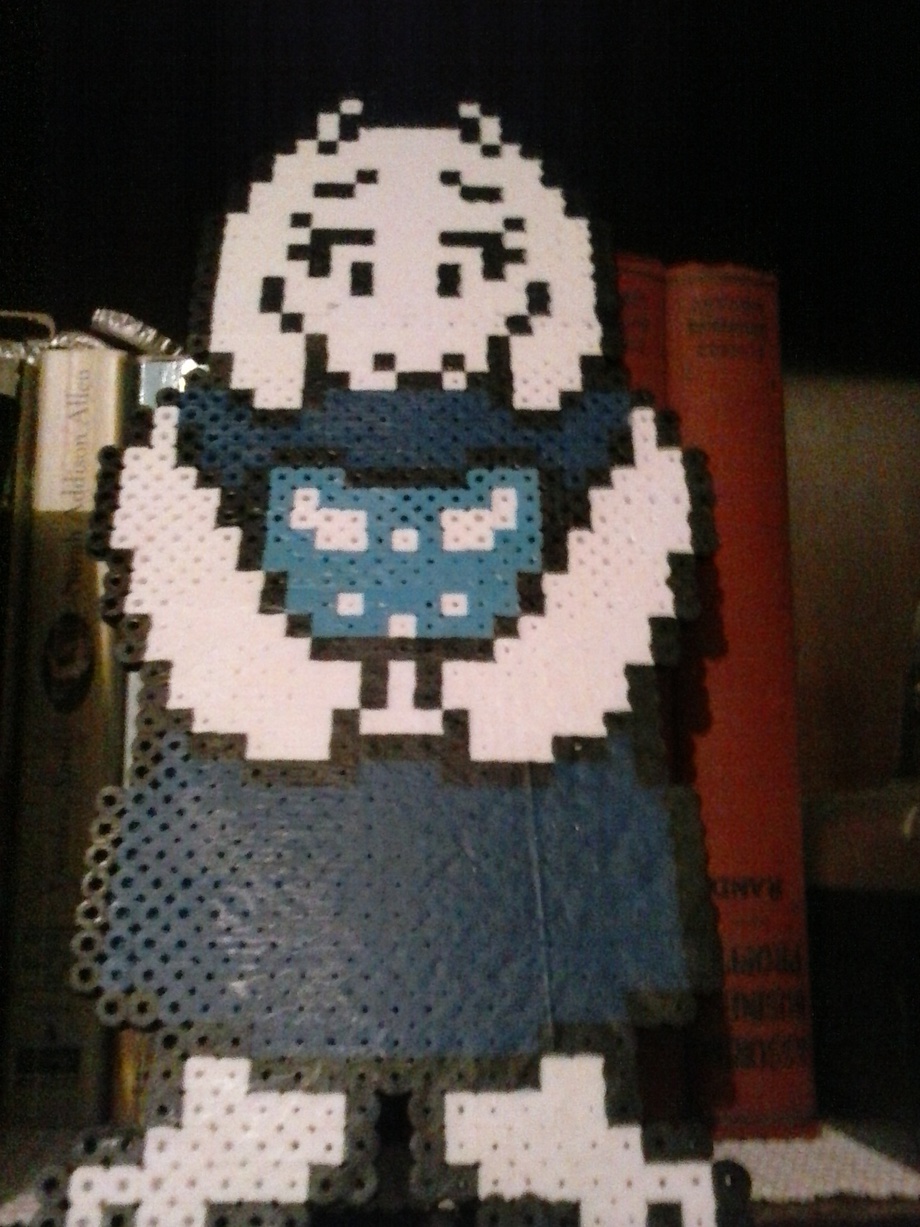 This is made entirly out of perler (tm) beads. Which are really fun to make stuff with i.e. pixel art.