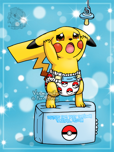 Pikachus mother was trying to learn Pikachu that he need to stop sucking on his pacifier so match that he did right now so she took his pacifier and and hung it on a hook so Pikachu could not reach it even if he was standing on one of his diaper package.