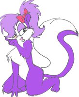 Crawling, up to the side of his to the top of his head his ears as the become round and covered with purple fur. Finally, her eyes grew bigger becoming toony like with her eyelashes growing longer. Andrew looked in the mirror seeing the reflection of Fifi La Fume. A random, pink bow appeared in her hair as Fifi’s mind began fusing with Andrew’s. Soon, forgetting her old life as a male human named Andrew who wanted attention from men now was Fifi La Fume a female skunk who was in love with men.