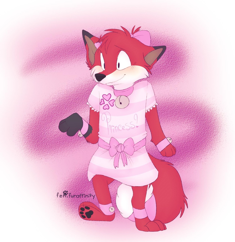 among other things his favorite dress up outfit is a pink frilly dress, with pink booties and mittens, as well as a tail bow situated near the base of his tail.