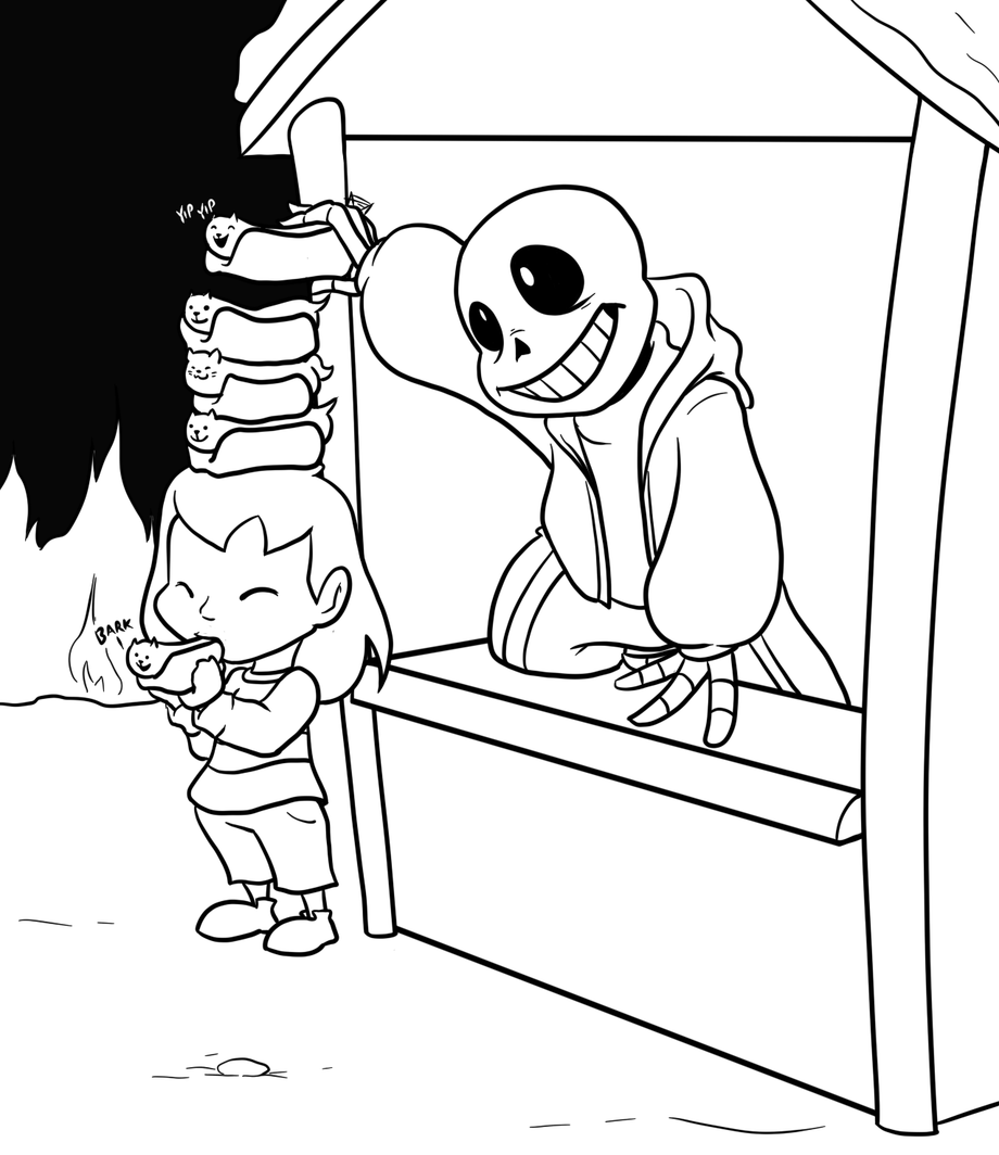 Sans is entertaining himself as Frisk enjoys themself a hotdog. I love this game, and it was fun doing fanart for Undertale. I do hope we return to this world.