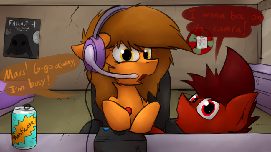 Venus is just trying to stream pong on her 56 kb/s internet connection since that’s all she can afford, but that annoying stallion Mars just can’t keep away.