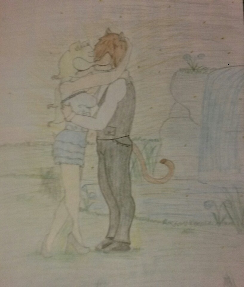 Here we have Julie the Hedgehog and William the Cat having their first kiss. >3< ~ This is from my story. ^^ I hope you like it. Sorry for the bad quality. My camera sucks :(