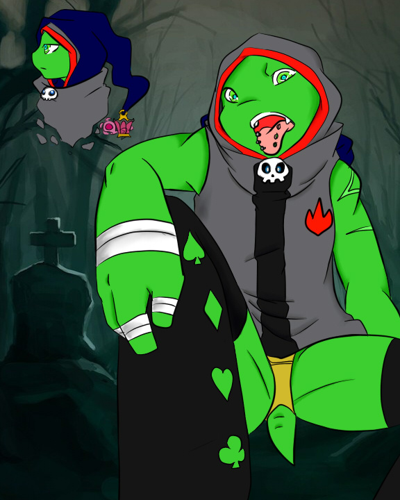 Foot Raph is finally finished it took some time and some brain cells are missing from my mind after all this but I am BEYOND happy on how he turned out he has 6 lovely holes in his tongue but only 3 piercings on the right the other 3 will show up in a lovely Foot Leo’s tongue. And he has a little skull Leo on his chest I just thought that would be a bit interesting it has expressions. And his hoodie OMG I had fun with that he has a little ghost in there it just floats in and out of the lantern on his outer hoodie. And he has 2 wounds on his arm one from Leo and the other has an implant in it from the shredder, Raph is usually trying to run away so the shredder had Baxter put a tracking device in his arm.
