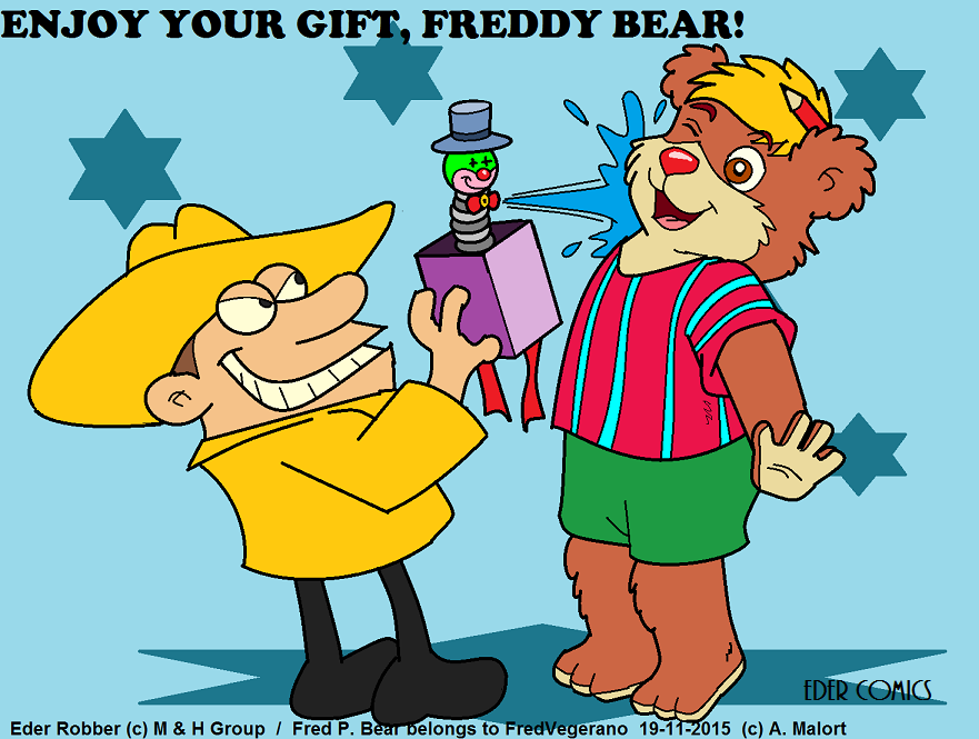 A gift from Eder Robber to Freddy Bear (Do not confuse from FNAF's) giving a wet surprise for his birthday.