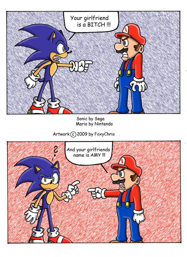Better joke! Mario: And your girlfriends a stalker! Amy: (pops up out of a bush in the background)