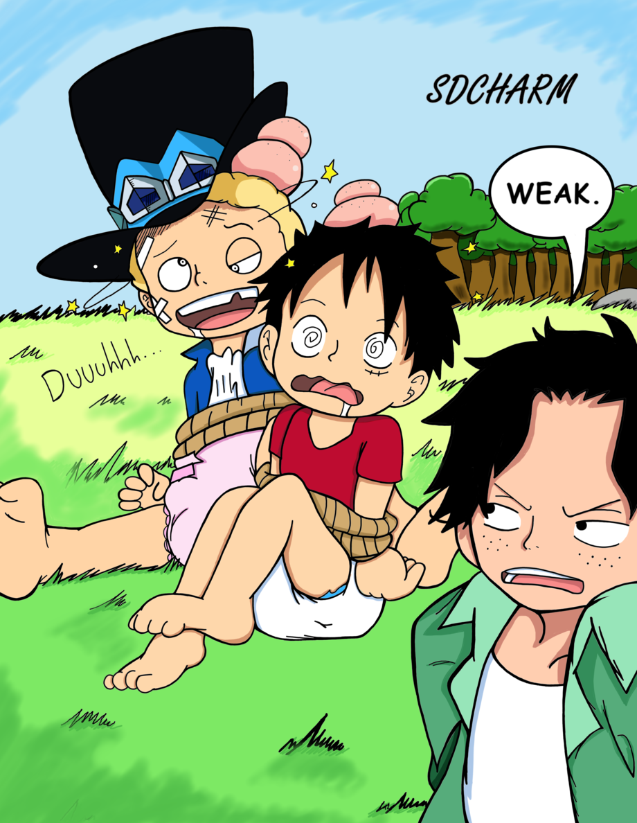 A One Piece picture. The trio of brothers had a ton of fights in their youth and the more humiliating the loss the more humiliating the punishment. It toughened you up. So, this one was a fight to wear the losers had to wear diapers on account of being big babies who weren't ready for the real world. Ace managed to kick both Luffy and Sabo's asses so that settles that.