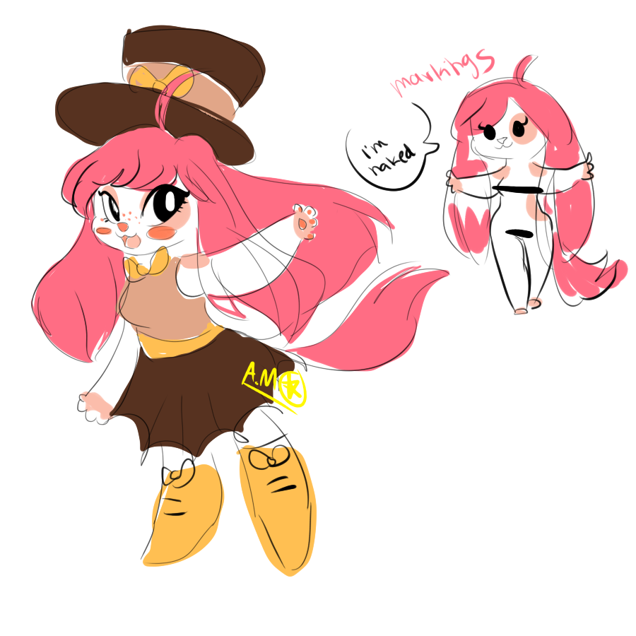She wears steampunk-ish clothes with shades of gold brown and sometimes blue!