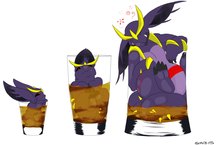 Commission for Areyath, of his friend Vetom, enjoying his Fireball whiskey