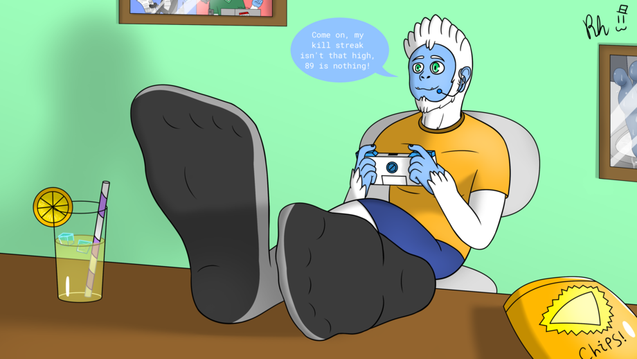 So, here we have Brian, playing some videogames and being a boss at it, meanwhile having his feet up on the table x3