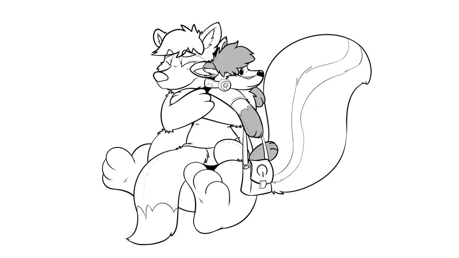 While reading on the engines the ship was going to haven it, his attention was broken hearing a lout *pop!* by his left ear of a bubble popping that was coming out of that pipe, making him wince... and started to feel a bit stuffed..? "what the-!" Was all eh could say as he dropped the pipe out of his mouth in shock as his belly was REALLY bulging out making his shirt creep up it and looking very soft... stitches started to form up his belly as he kept expanding! Within a few seconds he felt the clothes give up and fall off as he fell to the ground, now as a plush... A certain fox walking by happened to notice this cute skunk plush he just had to go grab and hug! The grey fox plush started to form a smile seeing this go on...