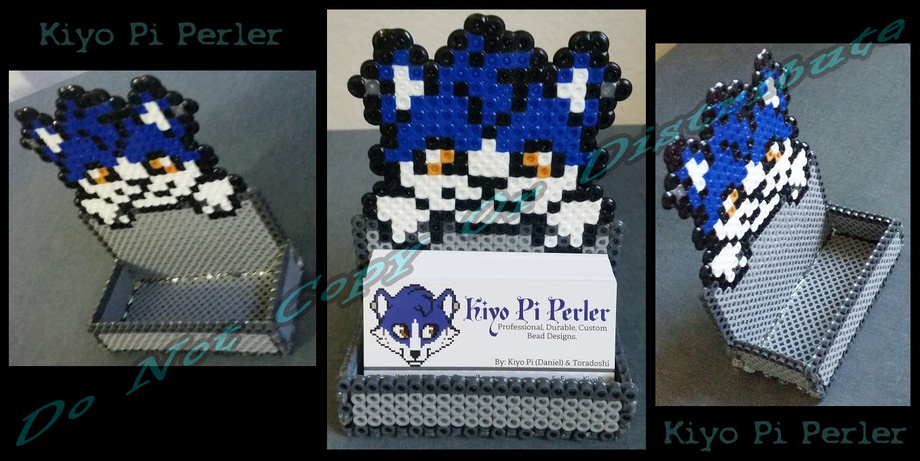 Kiyo Business Card Holder (Original Pattern) - Sorry about the delay but WOW these are a bitch to setup. So, when doing 3-D perler stuff you want to do a quick melt so the beads keep their shape and fit easily into each other, problem though, that makes it brittle... and I'm all about being able to run my shit over with a car and it be fine, SO, will likely be holding off on doing these as commissions for a bit to make sure that this alternative method works. Using my melting method I had to do a LOT of cutting to make this work, and a lot of gluing. Gonna leave it on my desk for a while, slap it off every time I leave and return from work to test and see how it goes. If it breaks will try something else. Stay tuned!