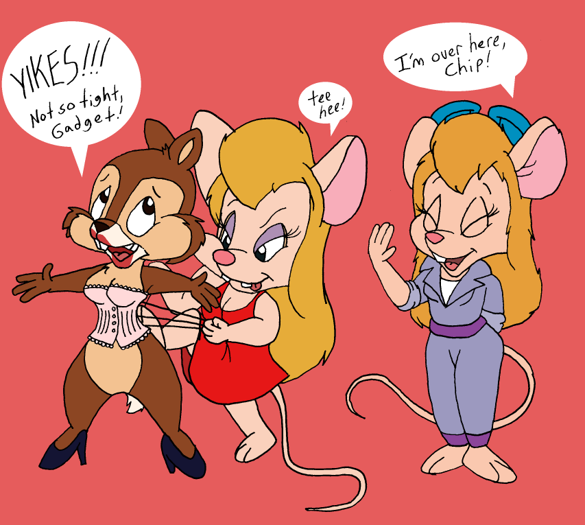 Gadget couldn't believe Chip was such a Rocky Horror fan. One mention of the Review coming to town, and he was already asking Dale to borrow his fishnets.