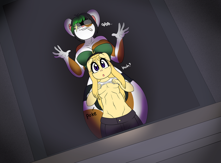 Sleeping too close to Fraise tends to make people hot though, and sweaty. She's kind of smothering! So poor Schmucky wakes up half buried and feeling too hot for comfort. He wiggles free and heads to the bathroom. A thunderstorm rages outside the safety of the household, and he doesn't notice right away that the power has gone out. He takes a little light with him and toddles on off to the bathroom to get out of his clothes.
