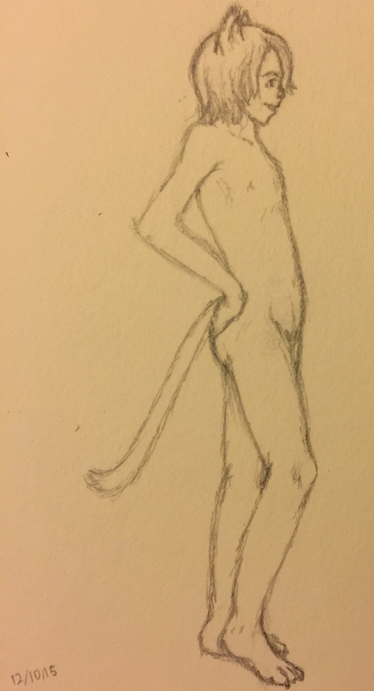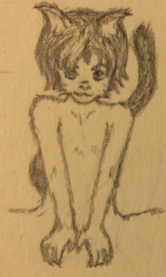 The second one is the one I drew first, but it didn't come out how I wanted it, so then I drew the cutie you see in the first picture. ^_^ I'm trying to nail down the design of a new character I've been developing. Black fur with green highlights, with white fur on his face and torso.
