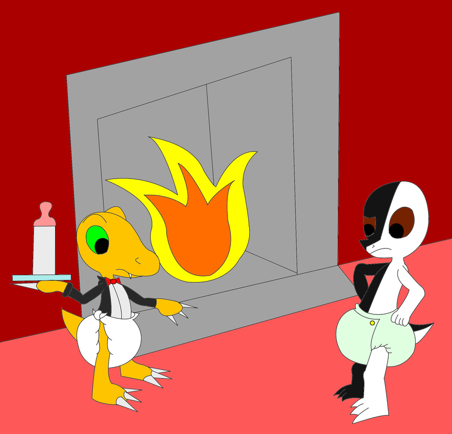 Lucien: I hate it, change me into a real diaper (Sniffs air) and you need one too.
