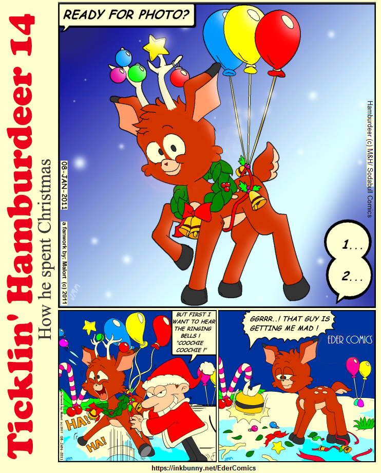 This time Hamburdeer's ready for a photo dressed middle Rudolph middle Christmas tree, but suddenly comes Eder to make a disaster as you can see.