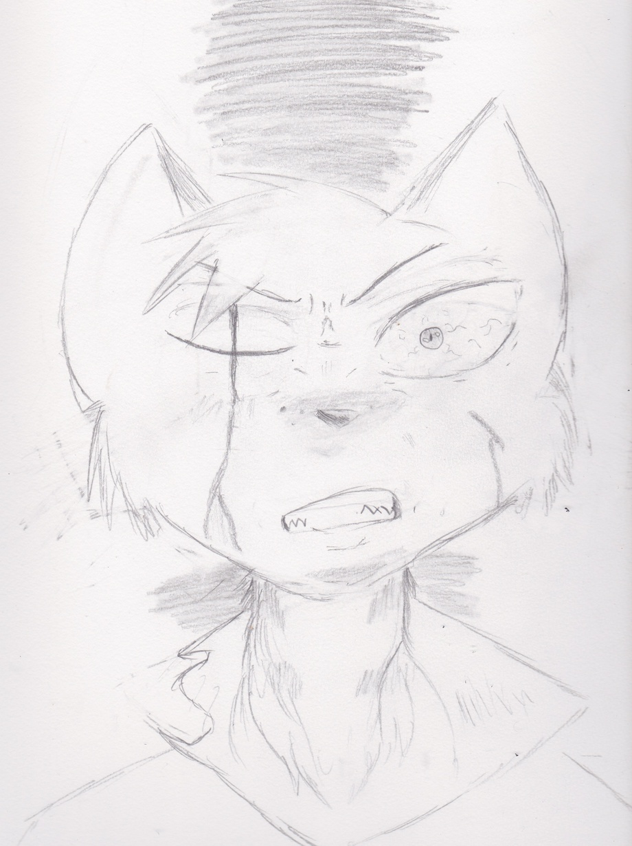 The beginning of a long career; Oddball shows his rage after the loss of an eye, and the near death of a friend. This is a doodle I did, just cause.