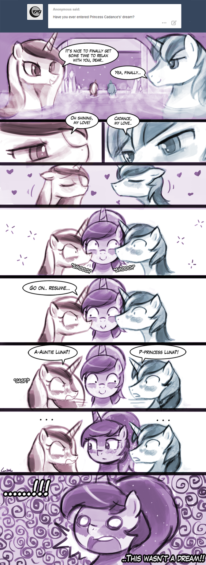 I'm thinking Luna failed this check. Either that or she forgot that Cadence wouldnt be asleep this time of day.