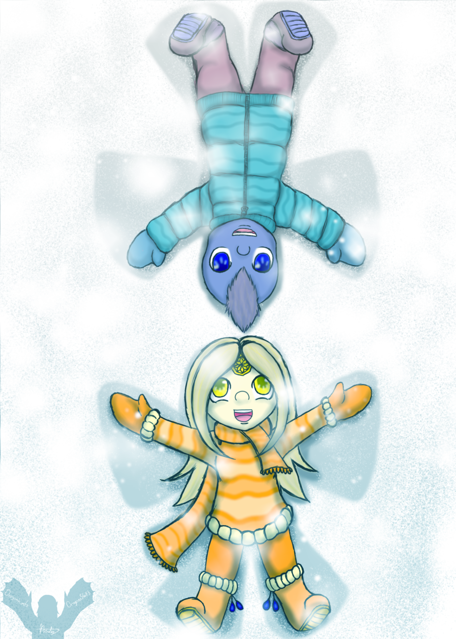 Saw her list on the secret santa and thought, why not and drew what I thought she'd like if I got her and have them make snow angels ' 3'