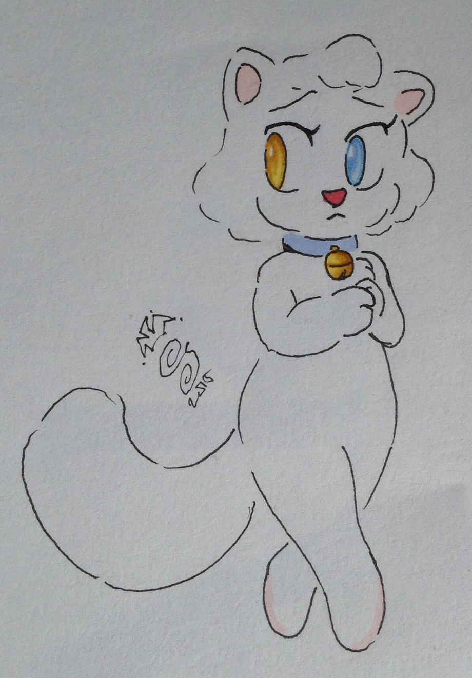 Don't have a name for this kitty yet. I also keep forgetting which of her eyes I decided is blue, but she's deaf on that side. It makes her self conscious and worried that she'll miss something. When she was little, other children used to prank her by sneaking up and grabbing at her from her deaf side. She's still always kind of on guard.