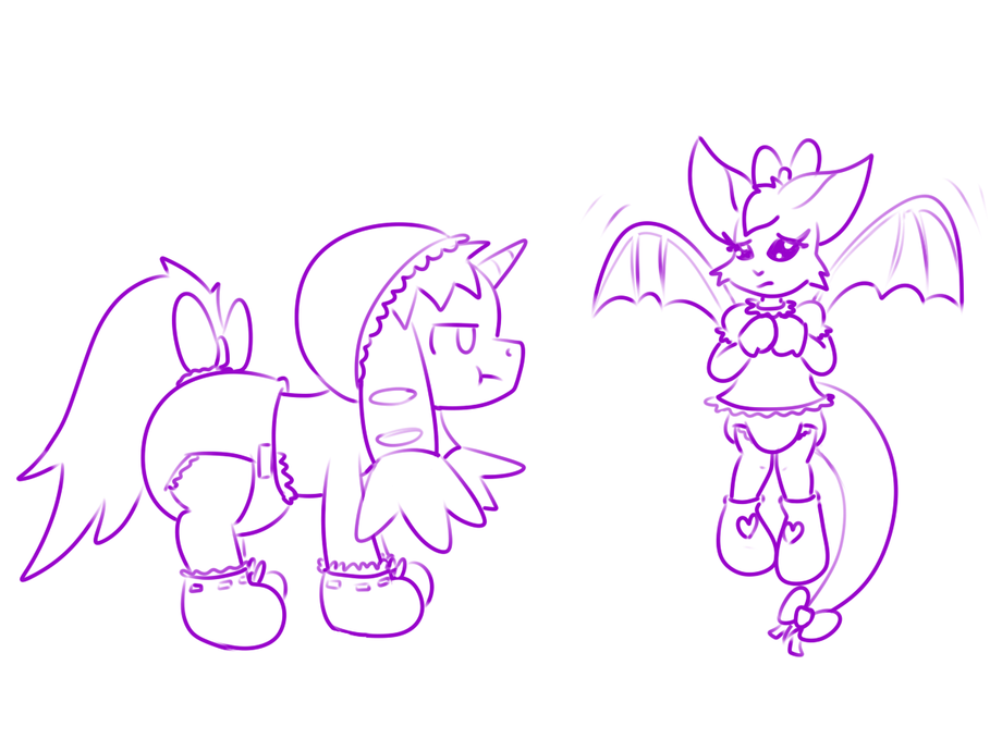 Terri (Terriermon Pony) and Fidget all dolled up. Finished pic will have some other versions, of course. Just making sure it's looking okay before I proceed.