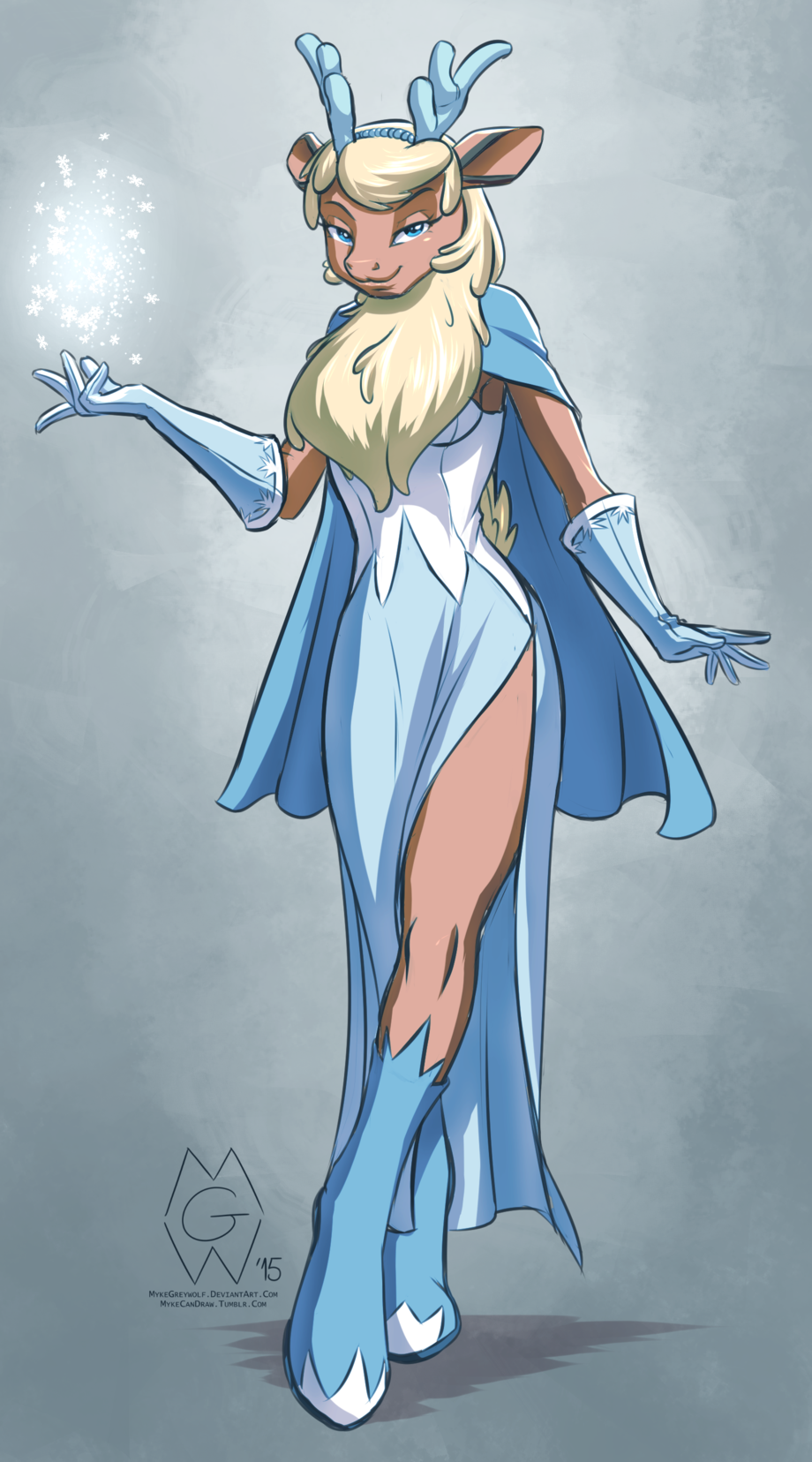 Another coloring of a pre-made sketch I had made a few weeks ago, my interpretation of Velvet the Reindeer in anthro form. I know, I know, the Elsa is strong on this one!