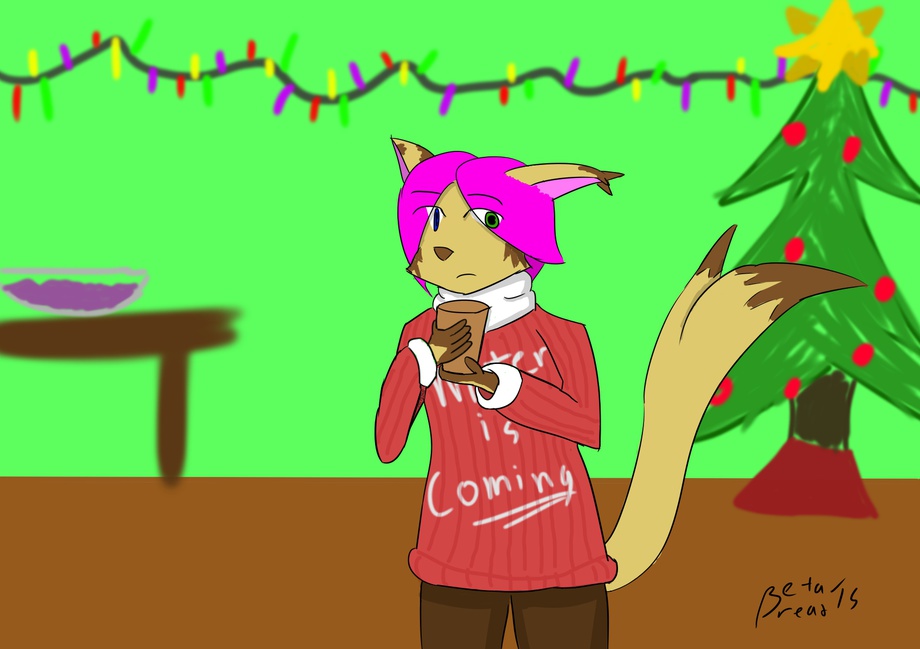 Oh, and I guess this is my Christmas drawing for this year. Didn't intend it to be, but I guess the sweater put me in the mood, and I just rolled with the background. Still like how it turned out in the end, though, so...I guess it all works out in the end.